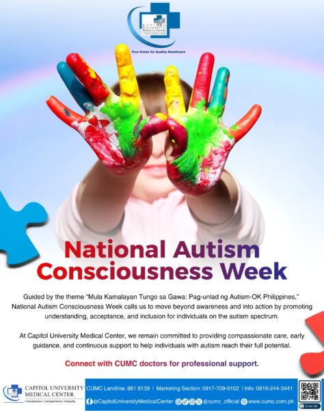 This week, Capitol University Medical Center (CUMC) calls on families and communities to embrace patience, understanding, and empathy. ๐๐๐ญโ๐ฌ ๐๐๐ฅ๐๐๐ซ๐๐ญ๐ ๐ญ๐ก๐๐ข๐ซ ๐ฎ๐ง๐ข๐ช๐ฎ๐๐ง๐๐ฌ๐ฌ, ๐ฌ๐ฎ๐ฉ๐ฉ๐จ๐ซ๐ญ ๐ญ๐ก๐๐ข๐ซ ๐ ๐ซ๐จ๐ฐ๐ญ๐ก, ๐๐ง๐ ๐๐ซ๐๐๐ญ๐ ๐ ๐ฐ๐จ๐ซ๐ฅ๐ ๐ฐ๐ก๐๐ซ๐ ๐๐ฏ๐๐ซ๐ฒ ๐ข๐ง๐๐ข๐ฏ๐ข๐๐ฎ๐๐ฅ ๐ฐ๐ข๐ญ๐ก ๐๐ฎ๐ญ๐ข๐ฌ๐ฆ ๐ข๐ฌ ๐ฌ๐๐๐ง, ๐ก๐๐๐ซ๐, ๐๐ง๐ ๐ฏ๐๐ฅ๐ฎ๐๐.